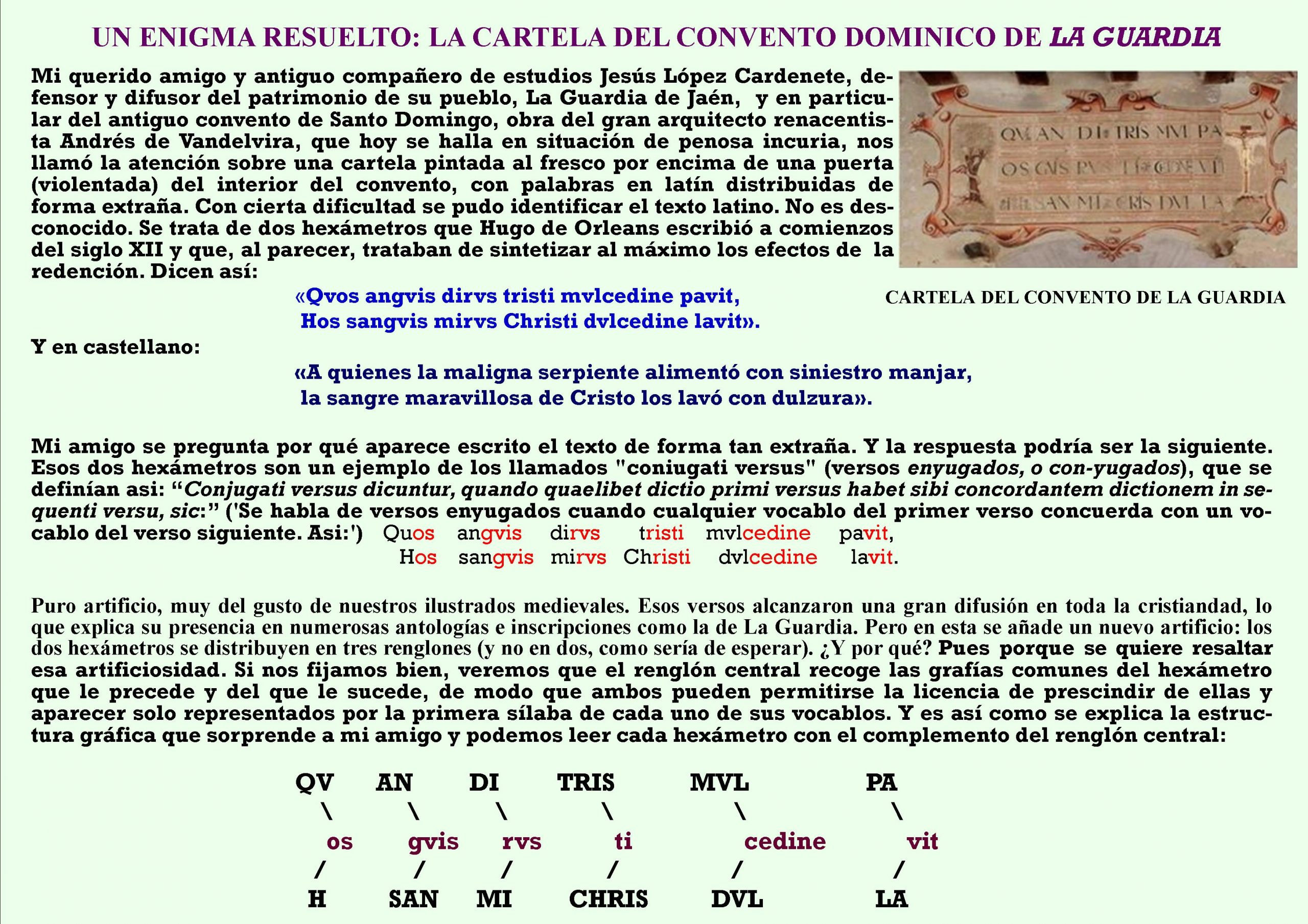 EL ENIGMA DE LA CARTELA DEL CONVENTO DE LA GUARDIA